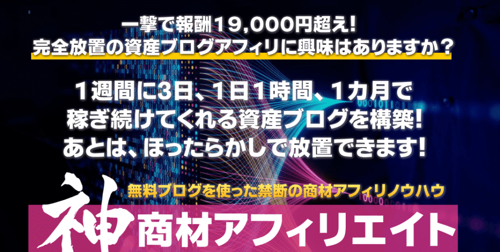 「神商材アフィリエイト」は、インフォトップの人気ジャンル(FX・投資系、恋愛系)に特化した無料ブログアフィリエイト教材。初期費用ゼロ、90日サポート付きで、アフィリエイト初心者でも最短で成果を出すノウハウが満載!